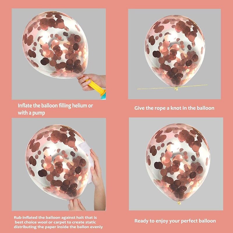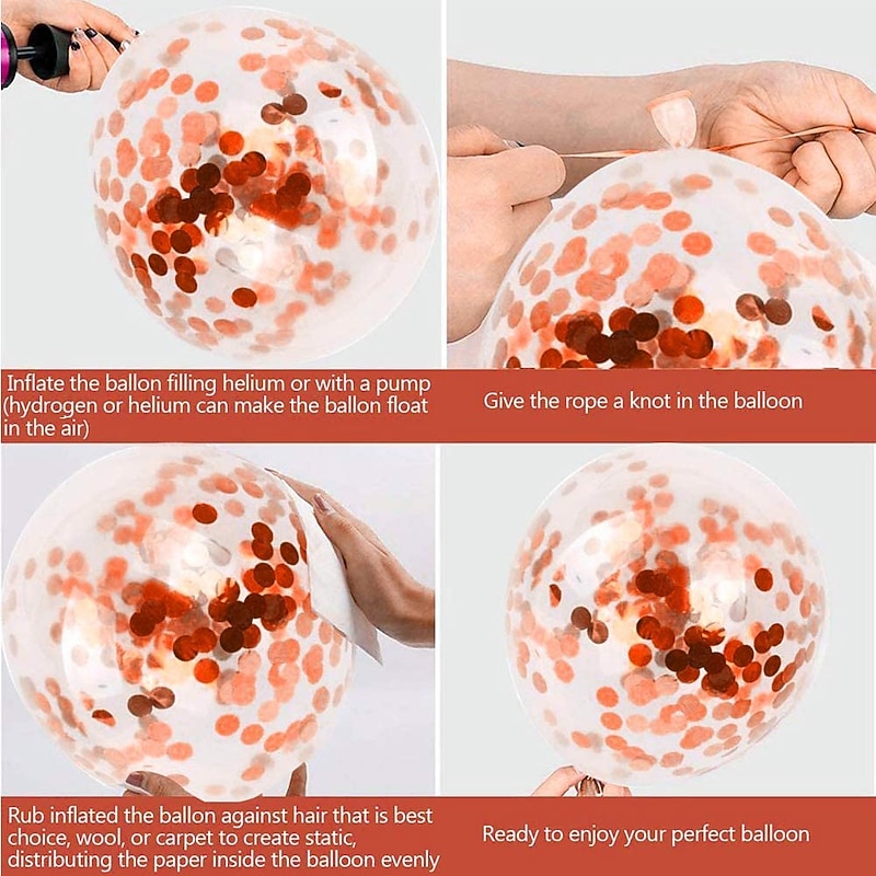 Rose Gold Confetti Latex Balloons, 12 Inch Birthday Balloons with Rose Golden Paper Confetti for Wedding Engagement Party, Graduation Party, Birthday Party Decorations (30 Pcs) 4
