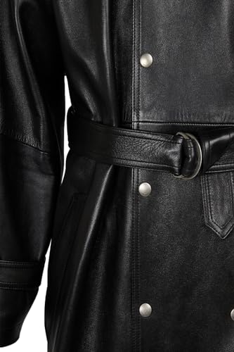 Genuine Cowhide Long Leather Trench Coat - Full Length Leather Coat - Black Leather Jacket for Men 5