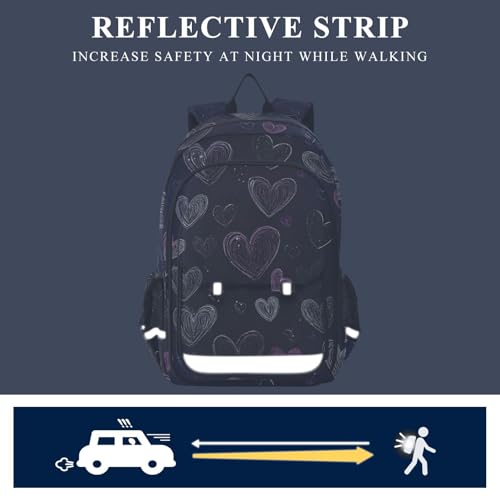 Hearts Doodle Kids Backpack Big Storage Multiple Pockets 17.7 IN for Travel, Bookbag School Bag with Chest Buckle Reflective Strip for Boys Girls in Primary Middle High School 4