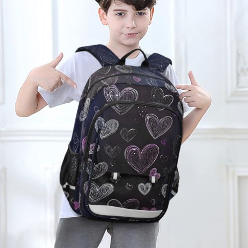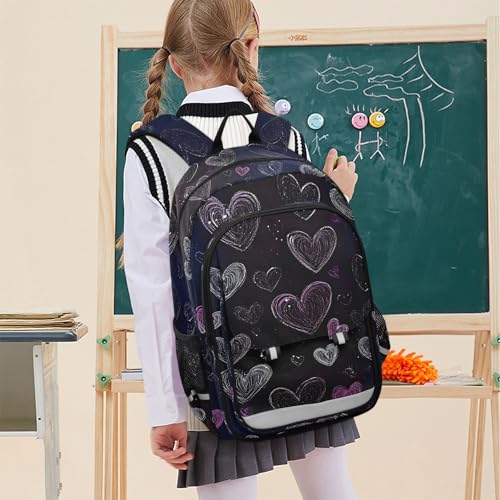 Hearts Doodle Kids Backpack Big Storage Multiple Pockets 17.7 IN for Travel, Bookbag School Bag with Chest Buckle Reflective Strip for Boys Girls in Primary Middle High School 7