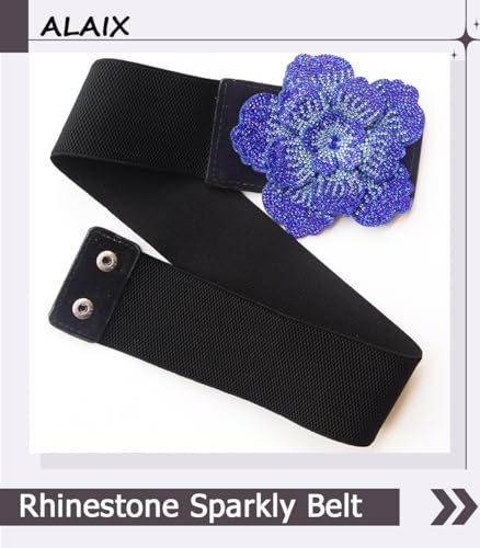HOT ! ALAIX Women's Belt Shiny Flower Buckle Bling Stretchy Wide Dress Belts for Women Sparkle Rhinestone Elastic Waistband
