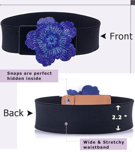ALAIX Women's Belt Shiny Flower Buckle Bling Stretchy Wide Dress Belts for Women Sparkle Rhinestone Elastic Waistband 5