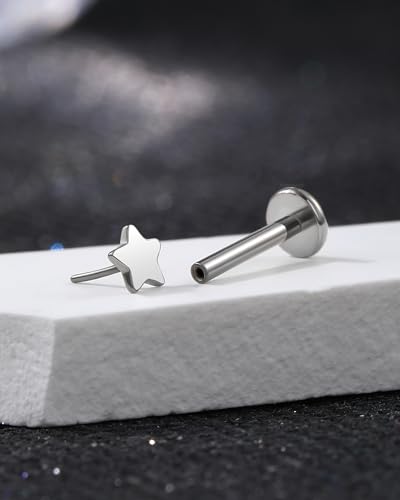Minimalist G23 Solid Titanium Cartilage Earring Stud 16G Threadless Push in Helix Tragus Earrings for Women Flat Back Tragus Medusa Piercing Jewelry Surgical Steel Hypoallergenic 6