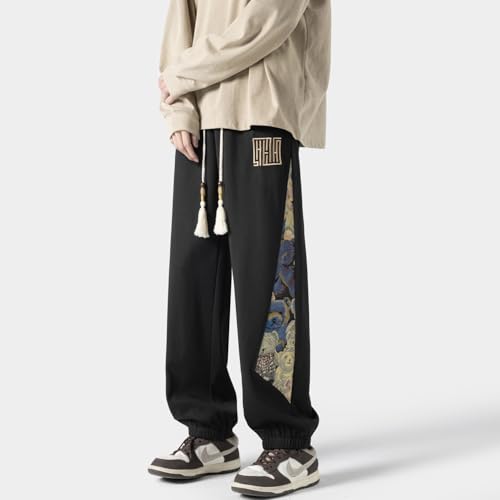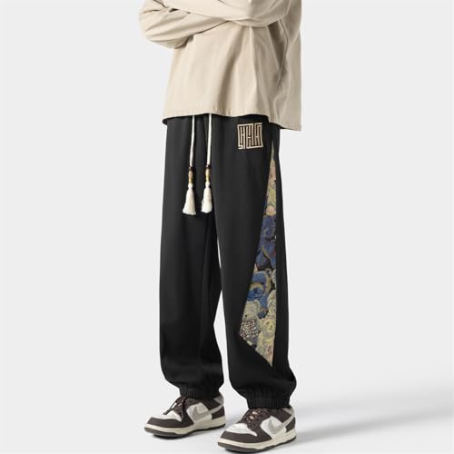 More information about Seidarise Men's Artistic Pattern Men's Black Pants, Tassel Drawstring & Loose Fit, Trendy Casual Wear