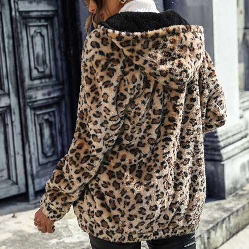 HOT ! Womens Leopard Sherpa Jacket Fleece Hoodie Zip up Winter Warm Hooded Sweatshirt Fall 2024 Long Sleeve Outfits