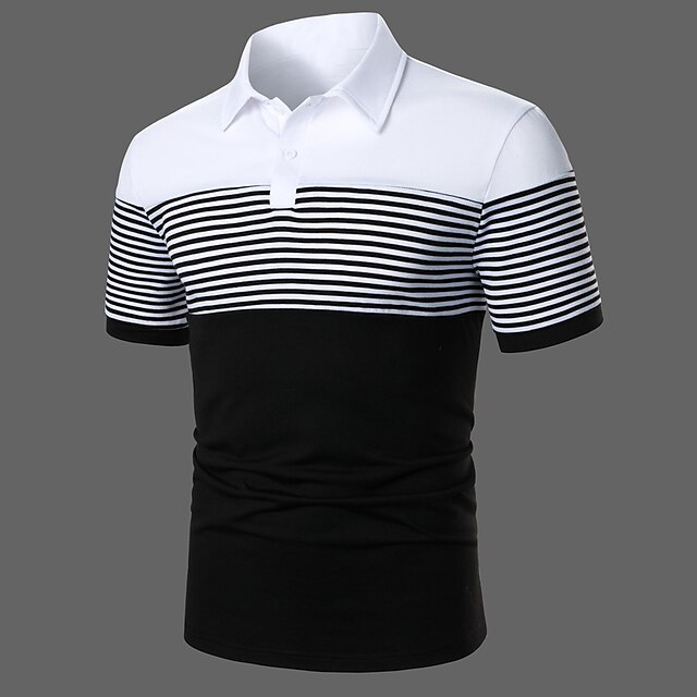 Men's Button Up Polos Polo Shirt Casual Holiday Lapel Short Sleeve Fashion Basic Color Block Classic Summer Regular Fit Black Dark Navy Button Up Polos 10