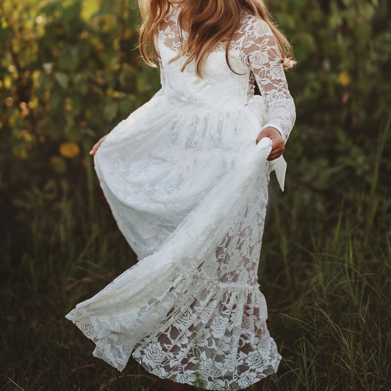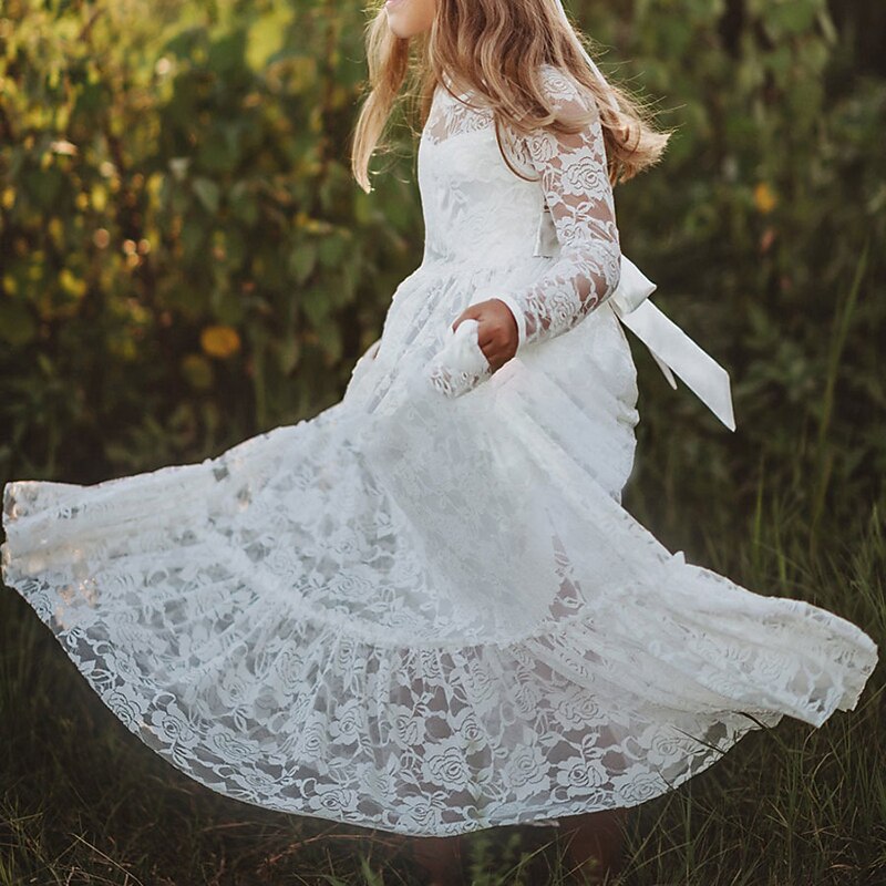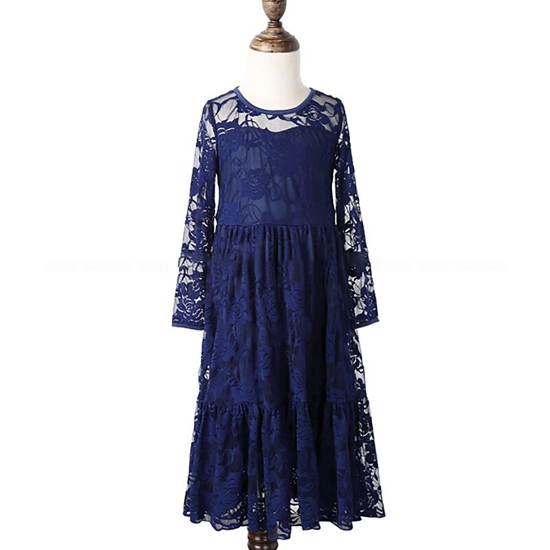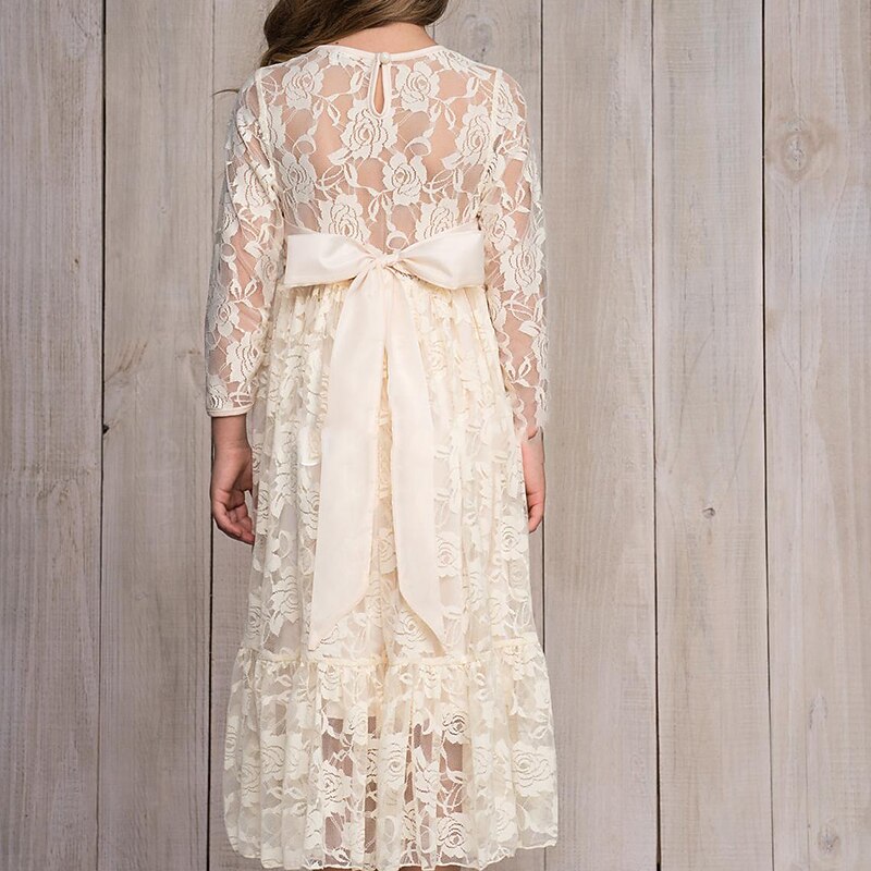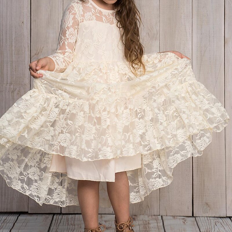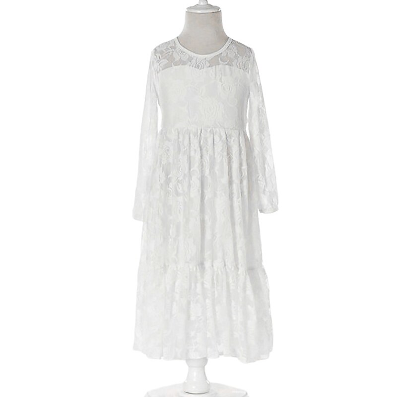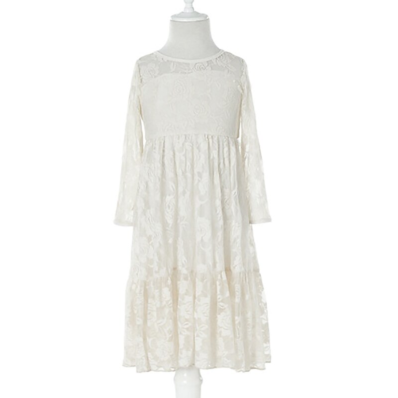 More information about Kids Girls' Flower Girl Dress Dress Solid Colored Long Sleeve Wedding Party Daily Lace Mesh Embroidered Cute Princess Cotton Maxi A Line Dress Tulle Dress Fall Winter 3-12 Years White Beige