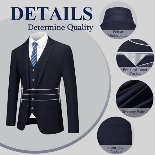 Bundle (Dark Navy-XL + Navy-XL) Premium Suits for Men Classic Slim Fit,Mens Suits 3 Pieces 2 Buttons Solid Jacket Vest Pants&Tie,Tuxedo Set for Men Party Wedding Business Prom Causal Formal 7