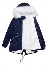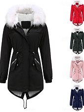 Highlights [Fabric] : This women's winter coat is crafted from high-quality polyester, designed to be both windproof and warm, making it an excellent choice for winter. The durable, water-resistant material ensures you stay comfortable in cold and wet weather, while the micro-elastic fabric provides ease of movement. [Fit] : Featuring a loose fit design, the coat ensures comfort and flexibility, suitable for layering over sweaters or other winter garments. The adjustable drawstrings at the waist help create a flattering silhouette, emphasizing the wearer’s figure. [Design Highlights] : The winter coat showcases a chic, asymmetrical hem that is longer at the back, lending a modern twist to its classic style. Additionally, the plush white faux fur lining in the hood is detachable, allowing for versatile styling options. Practical front pockets secured by zippers provide ample space for essentials, while elastic cuffs help retain warmth. [Occasions] : This versatile coat is ideal for both casual outings and more formal winter events. Whether you’re commuting to work or enjoying a day outdoors, this outerwear piece combines functionality with style, keeping you warm and fashionable. [Size] : Available in a range of sizes from S to 2XL, this coat accommodates various body types and offers options for different styling preferences.