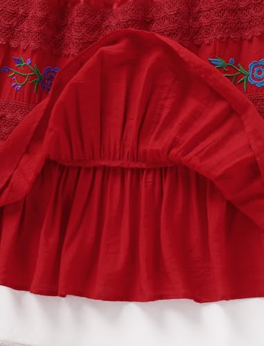 ABAFIP Women's Mexican Floral Embroidery Lace Elastic High Waist Ruffle A-Line Midi Skirt Traditional 4