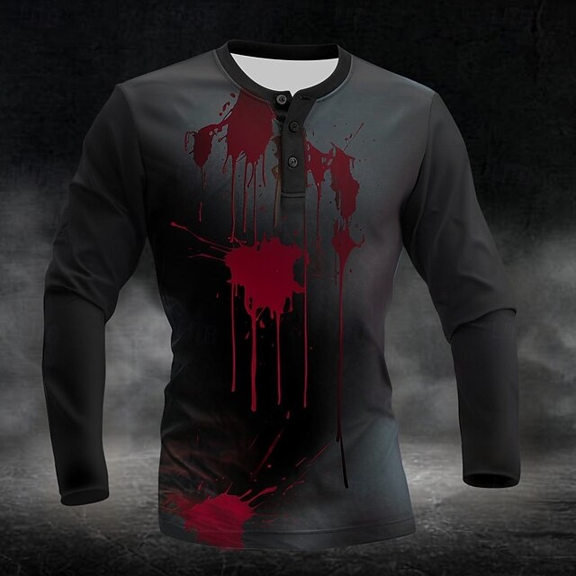 More information about Men's Halloween Graphic Blood Splatter Blood stains Henley Shirt Long Sleeve Fashion Cute Daily Halloween Casual Holiday Spring Fall Spring & Fall Black Henley Henley T-Shirt