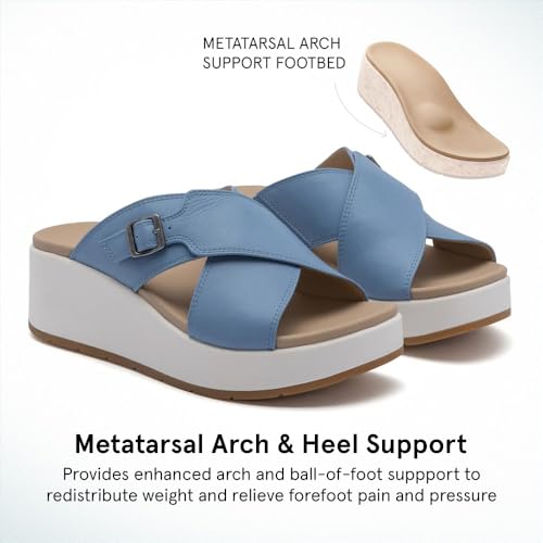 ABEO Women's Solstice Cross Slide Sandals | Arch Support Wedge Sandals | Built-In Metatarsal Pads | Black, Size 6-11 4