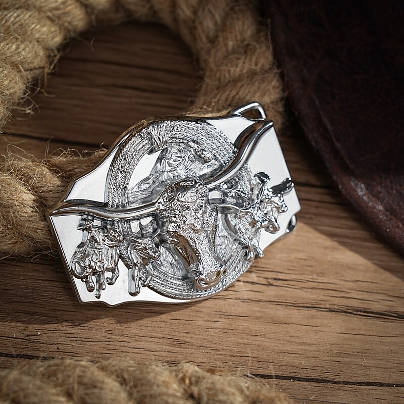 Highlights [Fabric] : The Men's Belt Buckle is crafted from a durable alloy material, providing a robust and rust-resistant structure. The high-quality metal adds a vintage charm and ensures lasting wear, suitable for both casual and formal settings. [Fit] : This belt buckle is designed to be versatile and can seamlessly fit standard belt straps. Its substantial size allows it to serve as a focal point, enhancing the overall look of your outfit with its eye-catching details. [Design Highlights] : Featuring a beautifully detailed longhorn steer head in relief, this buckle showcases intricate embossing and Western motifs, such as cowboys and horses. These elements contribute to its rugged, cowboy-inspired aesthetic, making it a perfect statement piece for those seeking a touch of Western flair. [Occasions] : Ideal for daily wear, religious celebrations, and themed events, this vintage-style belt buckle adds a distinctive character to any ensemble. Whether you're dressing for a casual day out or a special occasion, this accessory complements a wide range of settings. [Size] : Available in one size, this buckle is designed to fit most standard men's belts, offering a convenient and adaptable option for various fashion needs. The color options include silver and bronze, allowing for flexibility in style and preference.