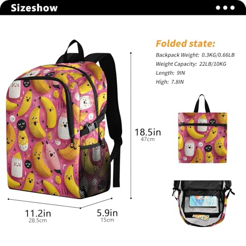 AIXIWAWA Lightweight Hiking Backpacks Cute Banana Print, Foldable Waterproof Daypack for Commute Travel 1