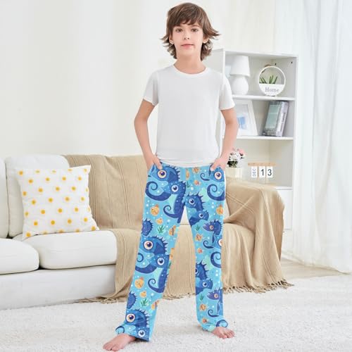 Boy's Pants Seahorse Painting Jogger Pants Elastic Waist Long Bottoms Trousers with Pockets 6-14 Years 6