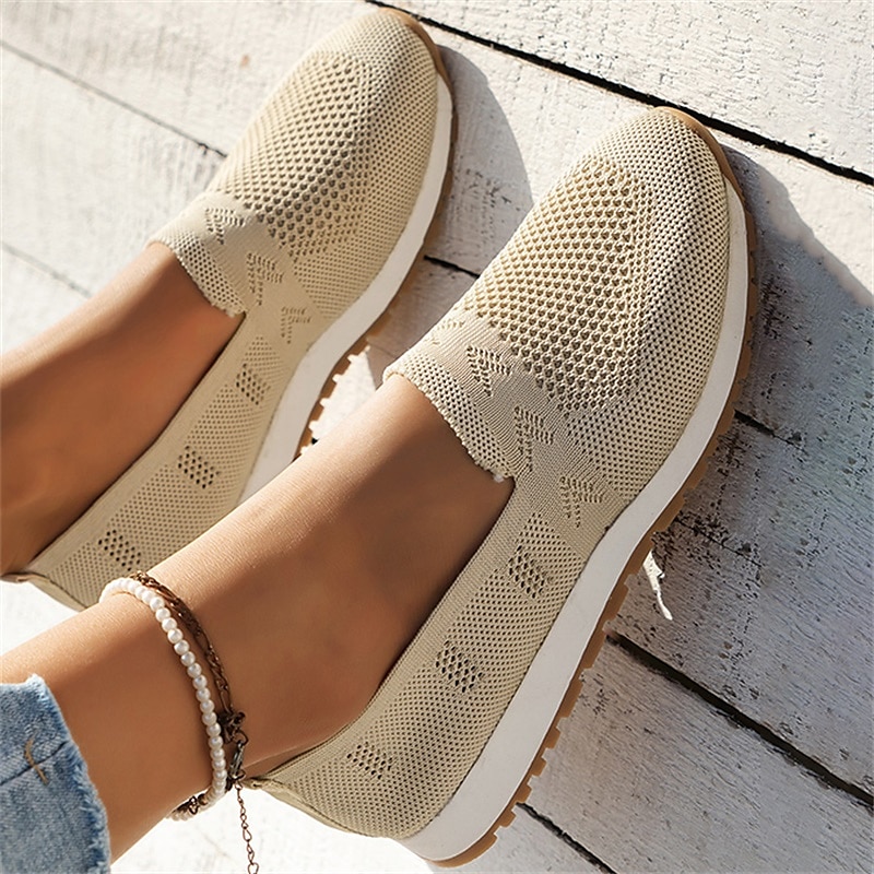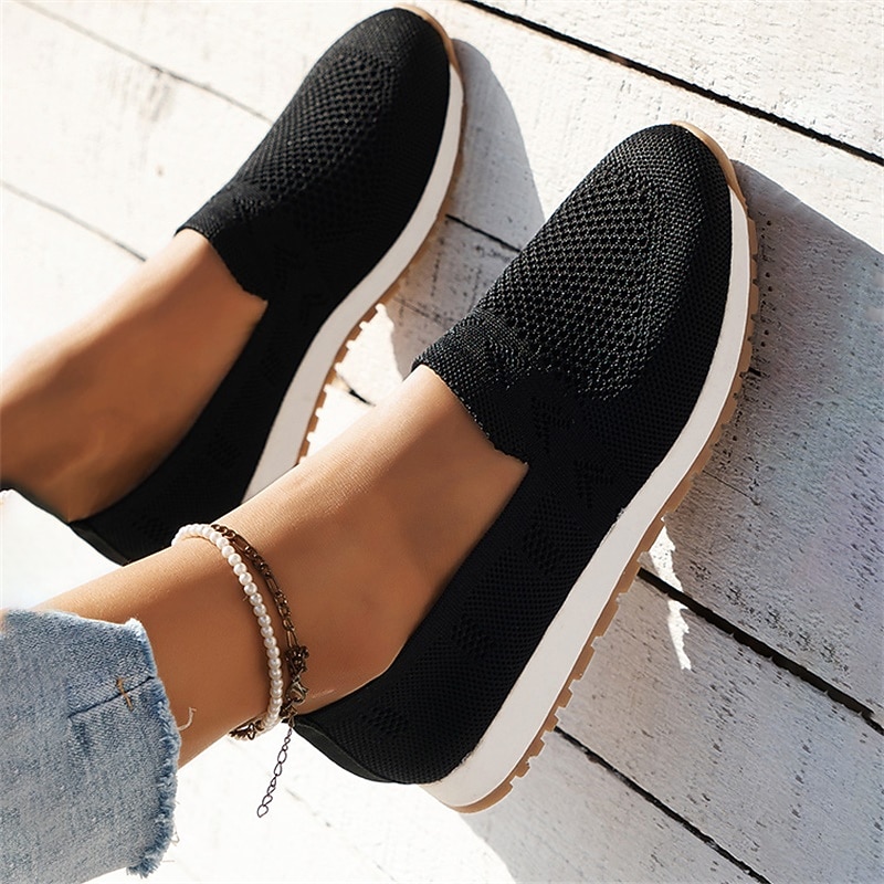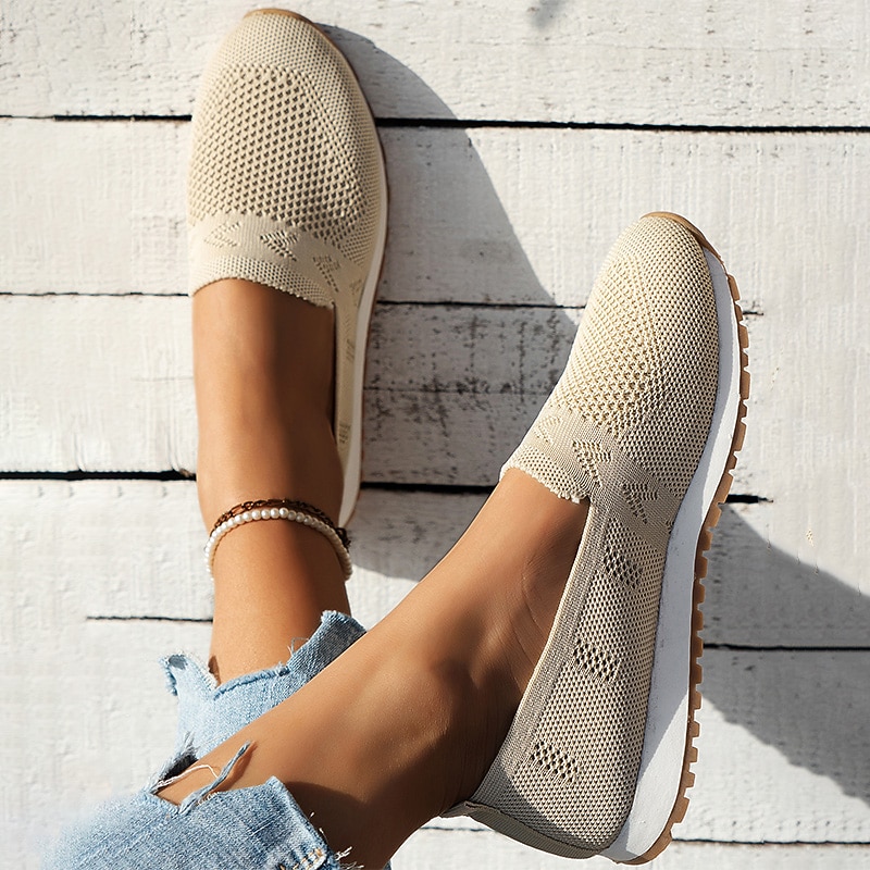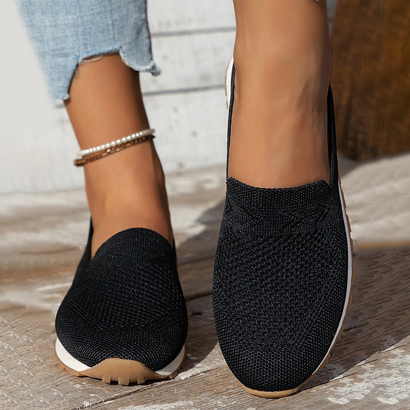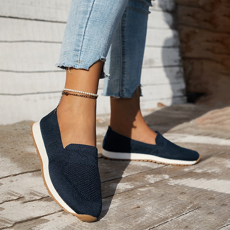 More information about Women's Sneakers Slip-Ons Comfort Shoes Daily Flat Heel Round Toe Fashion Casual Comfort Walking Tissage Volant Loafer Black Dark Blue Beige