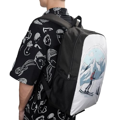 17 Inch Backpack Large Capacity Skiing Theme Shoulder Bags Casual Daypack Lightweight Laptop Backpack 6