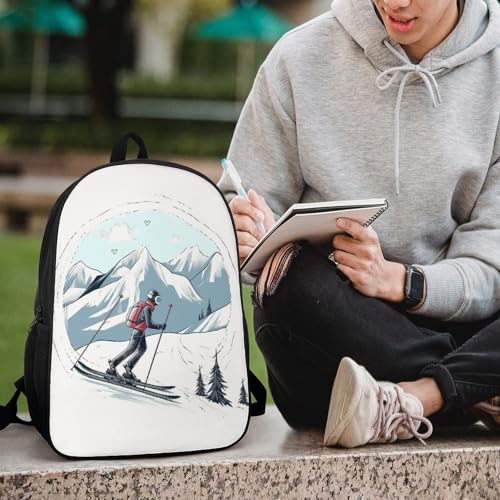 17 Inch Backpack Large Capacity Skiing Theme Shoulder Bags Casual Daypack Lightweight Laptop Backpack 1