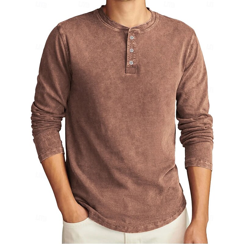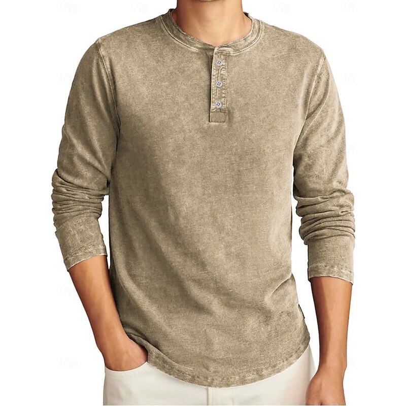 More information about Men's Henley Shirt Tee Tee Top Long Sleeve Shirt Long Sleeve Henley Fall Winter Retro Fashion Designer Nostalgic Fashion Vintage Vacation Street Going out Navy Black Light Green Top Tee for Men