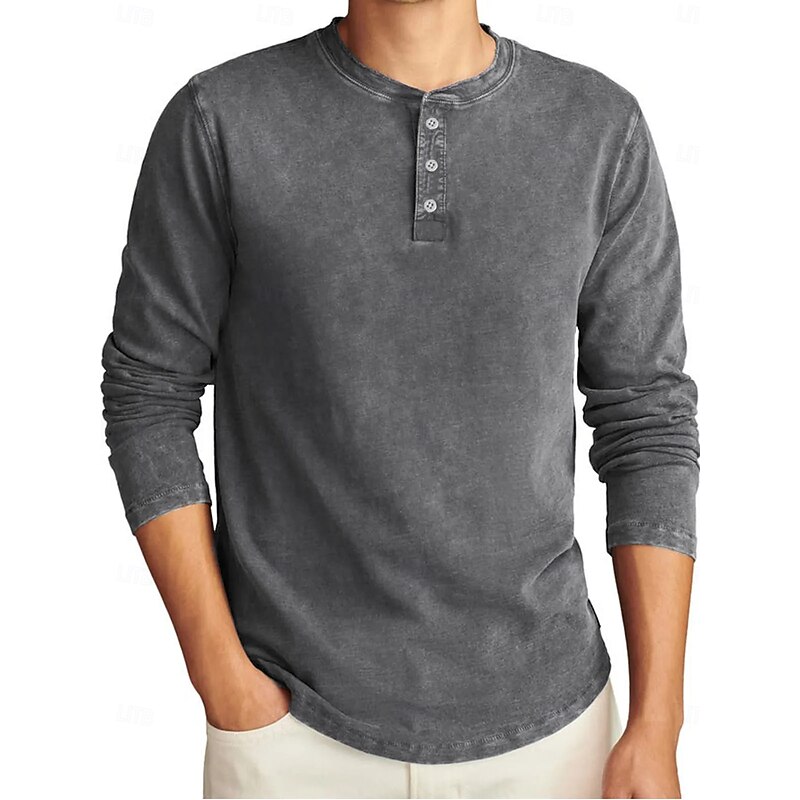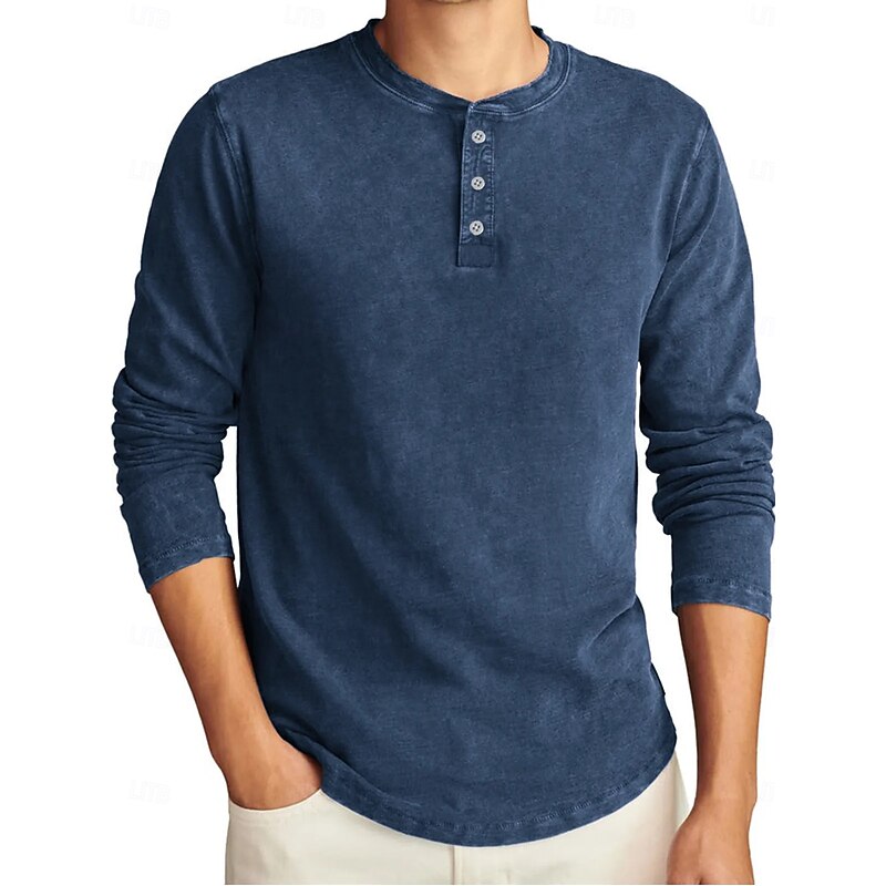 Men's Henley Shirt Tee Tee Top Long Sleeve Shirt Long Sleeve Henley Fall Winter Retro Fashion Designer Nostalgic Fashion Vintage Vacation Street Going out Navy Black Light Green Top Tee for Men 1