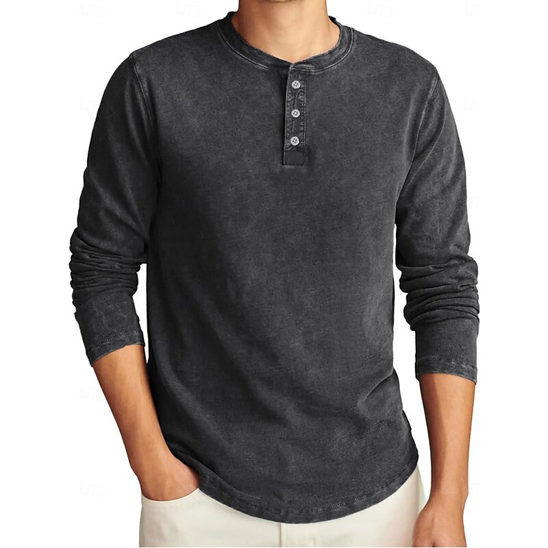 Men's Henley Shirt Tee Tee Top Long Sleeve Shirt Long Sleeve Henley Fall Winter Retro Fashion Designer Nostalgic Fashion Vintage Vacation Street Going out Navy Black Light Green Top Tee for Men 13