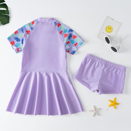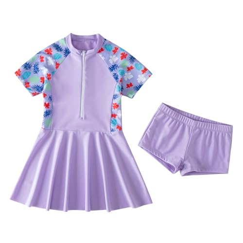 • Girls Swim Dress Swimsuit: Fashion girl one piece swimsuit swim dress girls short sleeve zipper swim dress with boyshorts rash guard bathing suit swimwear, One piece skirted swimsuit for toddler kids girls, zipper front sweetest floral prints and stylish swim dress help you enjoy much fun on the beach. swim dress for girl, girls rash guard swimsuits, modest swimsuits for girls,