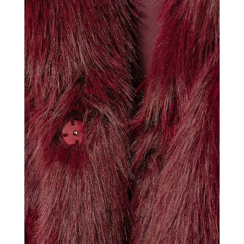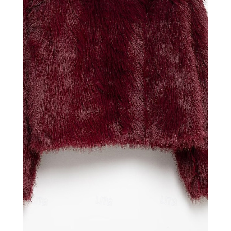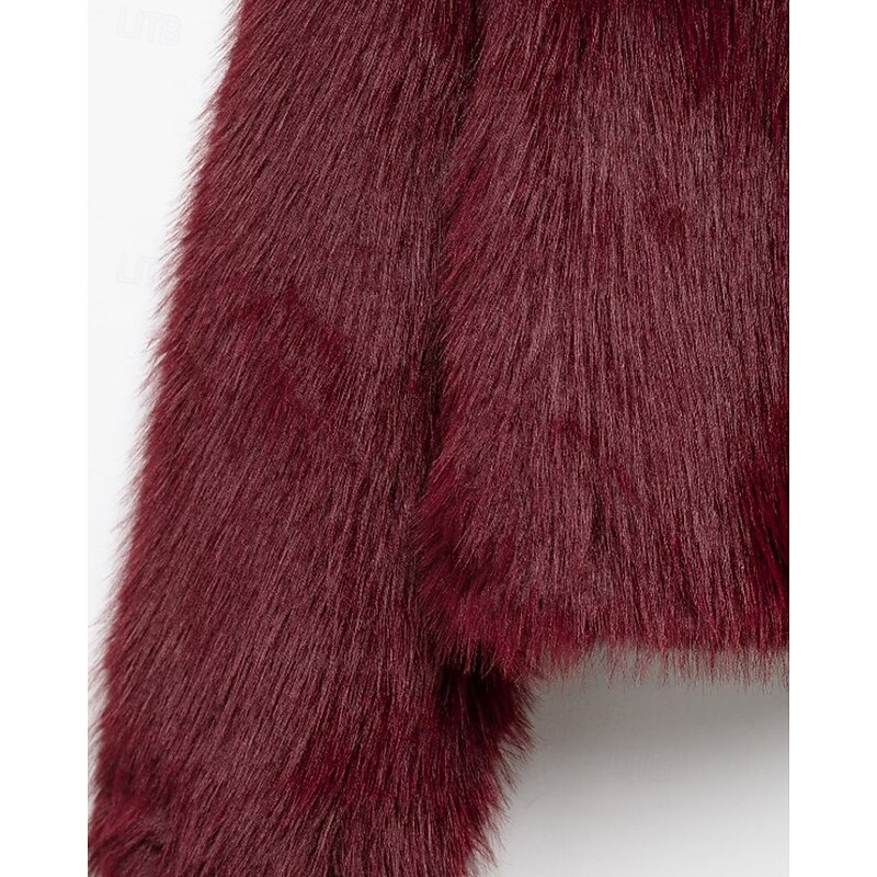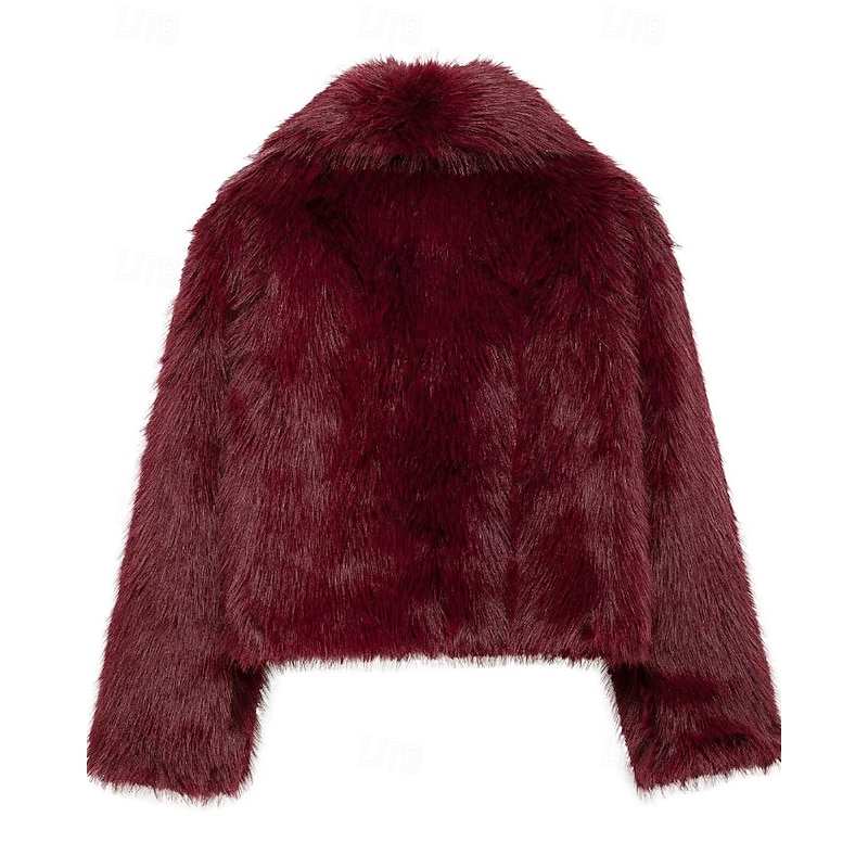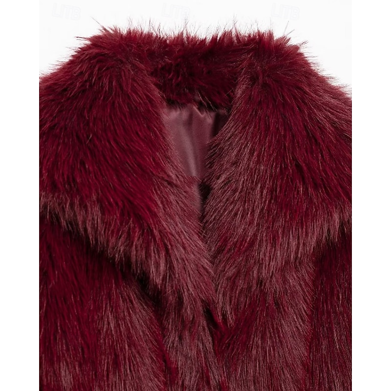 More information about Women's Faux Fur Coat Warm Comfortable Furs & Leathers Casual Plain Vacation Street Daily Wear Weekend Short Turndown Regular Fit Long Sleeve Outerwear Wine Fall Winter