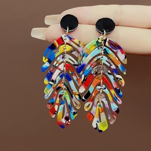 • LIGHTWEIGHT EARRINGS: Leaves have all kinds of shapes of colour, made of high quality acrylic. The acrylic resin earrings is 9*3.2 cm / 3.54*1.26 inch ; weight: Approx 9.2g a pair, Easy to Wear and Take off, Comfortable to Wear