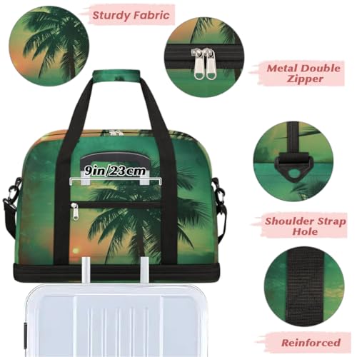 HOT ! Travel Duffel Bag with Shoe Compartment, Vintage Tropical Sunrise Shoulder Weekender Bags for Women, Foldable Waterproof Travel Bag Carry on Bag