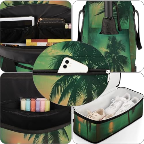 Travel Duffel Bag with Shoe Compartment, Vintage Tropical Sunrise Shoulder Weekender Bags for Women, Foldable Waterproof Travel Bag Carry on Bag 6