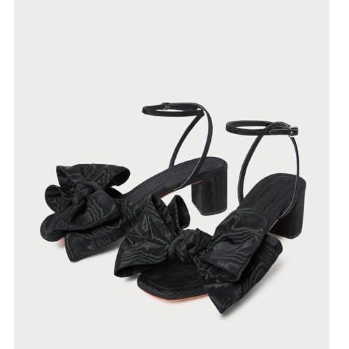 HOT ! Bow Heels For Women Block Heeled Sandals Slingback Heels Open Square Toe Summer Comfortable Wedding Sandals