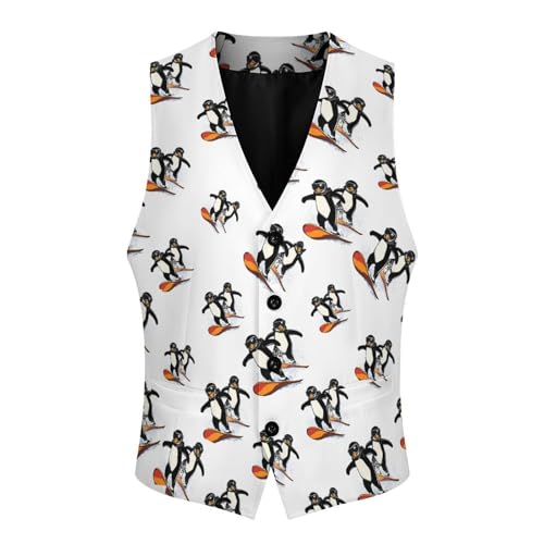 Ski And Snowboard Penguins Suit Vest for Men Slim Fit Sleeveless Jacket V Neck Business Waistcoat Button Up Dressy Top 6
