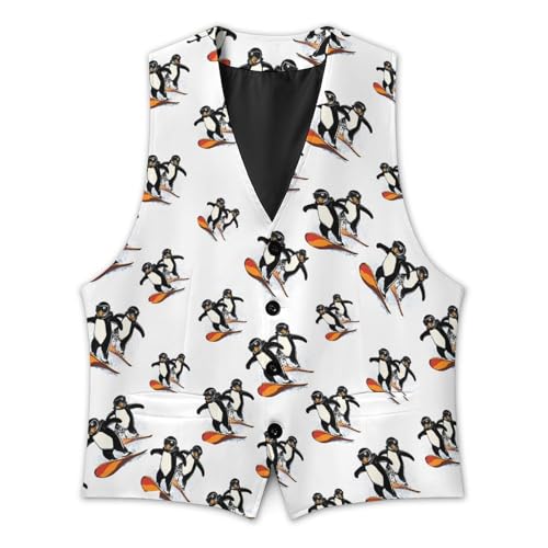 Ski And Snowboard Penguins Suit Vest for Men Slim Fit Sleeveless Jacket V Neck Business Waistcoat Button Up Dressy Top 7