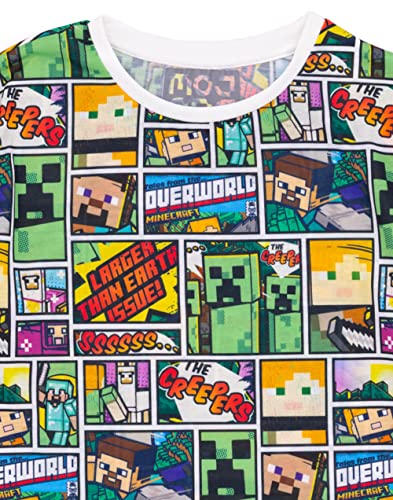 • MINECRAFT OVERWORLD DIMENSION DESIGN TEE – Minecraft shirt for him features characters the Creeper, Steve, Alex and more in the Overworld dimension seen in their iconic pixelated block look composed together in a comic book all over style print making the perfect gift for gamers.