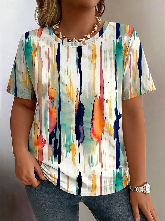 Women's Plus Size Tops T Shirt Graphic Abstract Print Short Sleeve Crew Neck Casual Daily Polyester Summer Spring White Blue 11