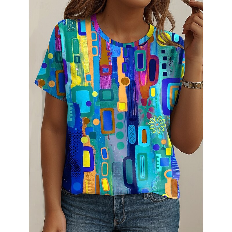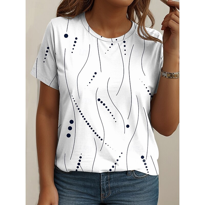 More information about Women's Plus Size Tops T Shirt Graphic Abstract Print Short Sleeve Crew Neck Casual Daily Polyester Summer Spring White Blue