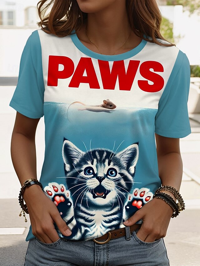 HOT ! Women's T Shirt Graphic Animal Letter Vintage Stylish Classic Short Sleeve Crew Neck Regular Tops Daily Weekend Print Blue Purple Green Khaki Summer Spring