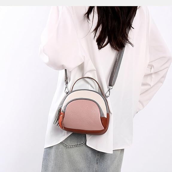 Genuine Leather Shoulder Bags for women,color blocking cowhide crossbody bags,multi layered handbag,Triple Zip Purses 4