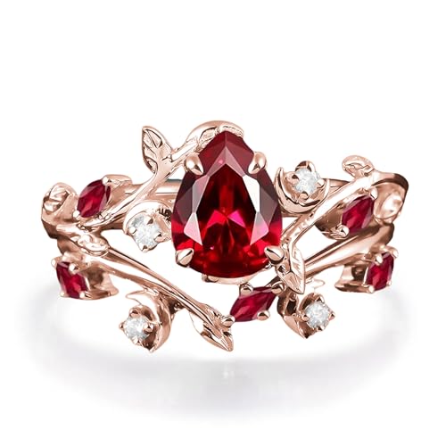 Pear/Kite/Hexagon Ruby Rings Set for Women 10K 14K 18K Gold Created Ruby Gemstone Inspired Anniversary Wedding Band Available in Rose/Yellow/White/Black Color Size 4-12 6