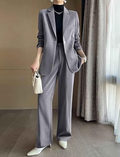 More information about Women's Two Pieces Outfits Business Casual One Button Jacket and Wide Leg Pants Suit Sets Work Clothes