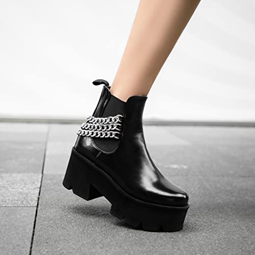 • ➤FINEST QUALITY & COMFORTABLE】: Womens Ladies Fashion Metallic Round Toe Dressy Ankle Boots Shoes, Simple Sleek vamp;Elastic Side Panel Easy On/Off; Waterproof Rain Anti-slip Pull On Platform Wedge Lightweight, High Strength, Good Fexibility, Finished with Lightly Cushioned for All Day Comfy and Eco-Friendly Design. Instep ventilation pores for your comfort.