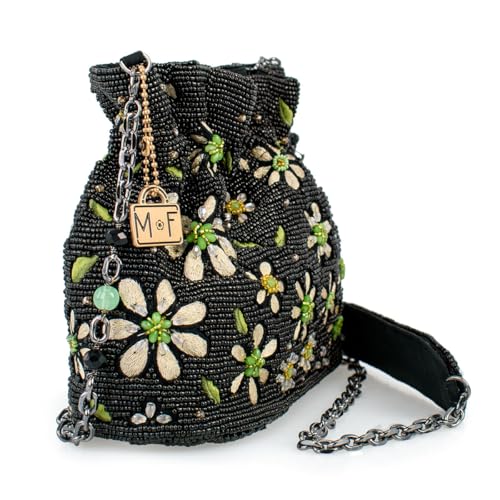 • Floral Bucket Bag Design: The Mary Frances Fancy Free Crossbody Handbag features a black bucket silhouette adorned with beaded daisies, creating a floral-themed novelty handbag that’s equal parts charming and fashionable.