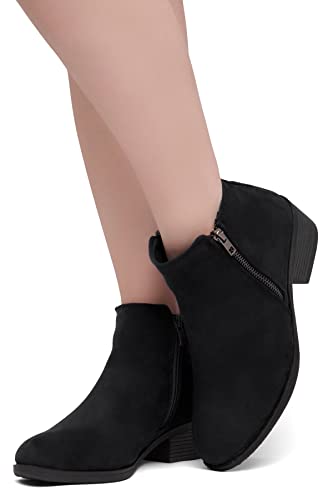 • PERFECT FIT WESTERN STYLE: Western ankle boots have a simple, sleek upper made out of vegan suede and a low, stacked heel adds the perfect amount of height and comfort with every step.