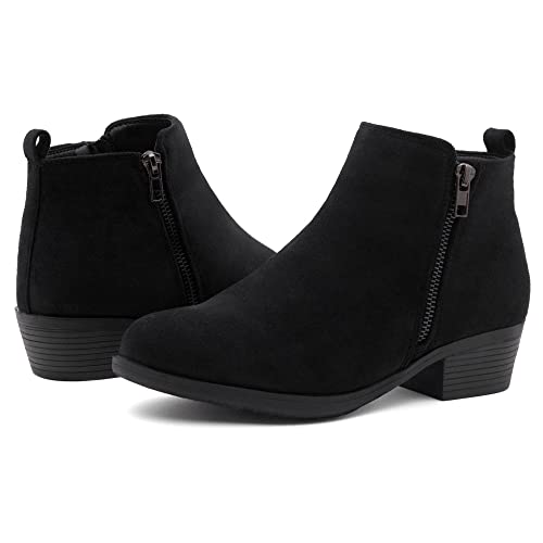 Shoe Land Ellaire Women's Ankle Booties Chunky Low Heeled Zipper Boots Black booties Almond Toe Slip on Walking Shoes 6
