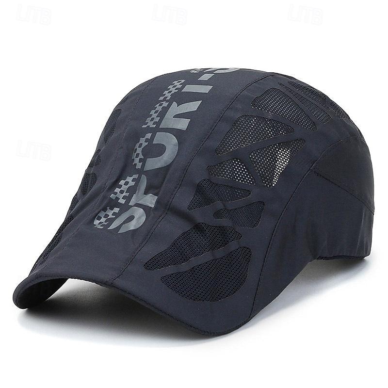 Highlights [Fabric] : Crafted from 100% high-quality cotton, this hat offers a soft, breathable texture, ensuring a comfortable wear in warm weather. The integrated mesh design enhances ventilation, keeping your head cool and dry throughout the day. [Style] : This hat combines elements of a beret, sun hat, and trucker hat, resulting in a versatile piece suitable for casual and fashion-forward streetwear. Its sleek and sporty style makes it a great addition to any outfit. [Design Features] : The front prominently displays a bold letter pattern, adding a modern and sporty touch to your look. The adjustable strap at the back allows for a customizable fit, ensuring comfort and stability during any activity. [Occasions] : Perfect for summer outings, street fashion, or everyday wear, this hat is designed for active men who value both style and function. Whether you're on a casual day out or engaging in outdoor sports, this hat provides essential sun protection without compromising style. [Size Range] : Available in one size with an adjustable strap, this hat is designed to fit a wide range of head sizes, providing both flexibility and comfort.
