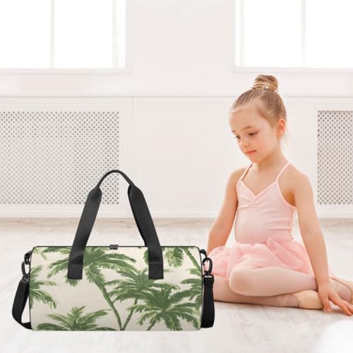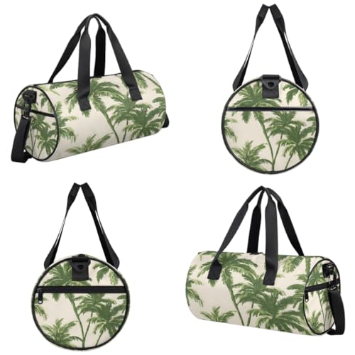 Plant Palm Trees Printing Round Barrel Sports Fitness Bag, Travel Luggage Bag, Reusable Handbag, Suitable For Men and Women 1