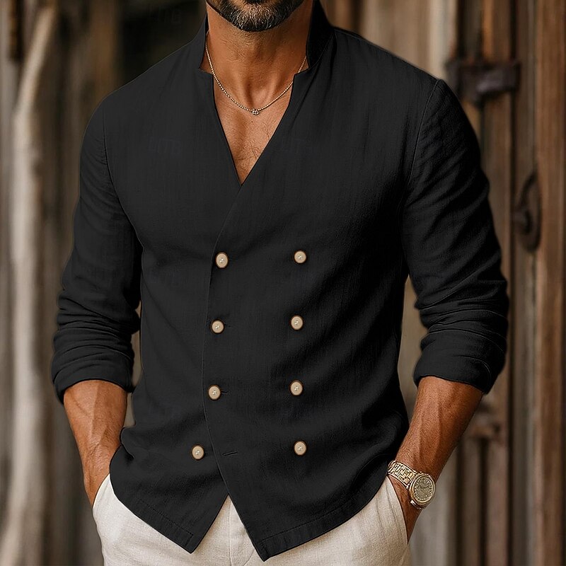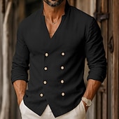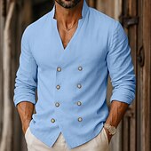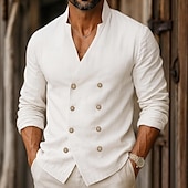 More information about Men's Shirt Linen Shirt Band Collar Shirt Summer Shirt Beach Wear Button Up Shirt Plain Formal Vacation Black White Blue Long Sleeve Mandarin Collar Summer Spring Clothing Apparel