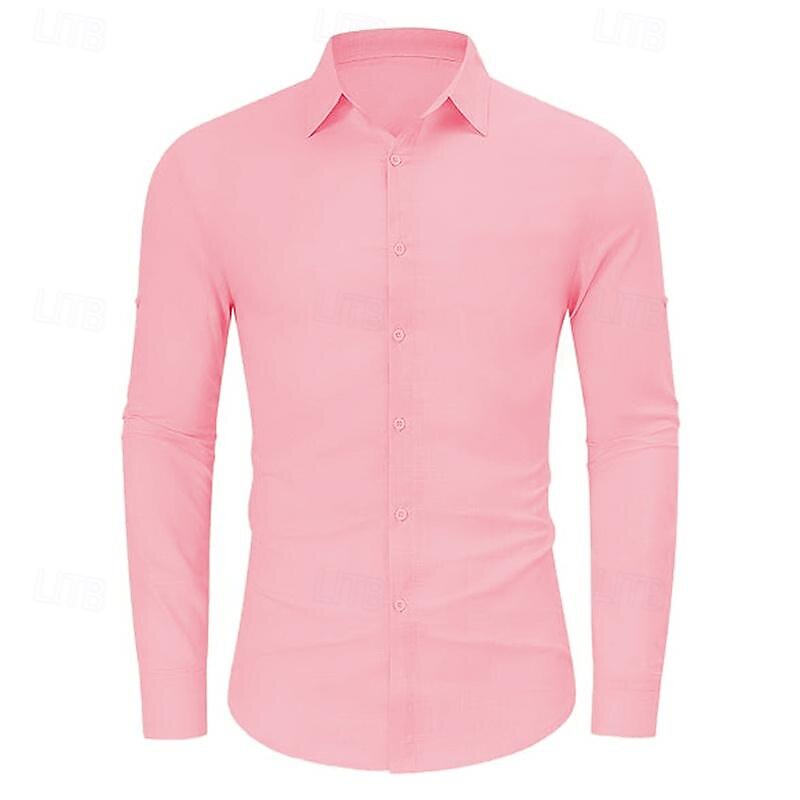 HOT ! Men's Shirt Linen Shirt Casual Shirt Cotton Shirt Plain Vacation Hawaiian Black White Pink Blue Long Sleeve Turndown Spring & Fall Clothing Apparel Button-Down