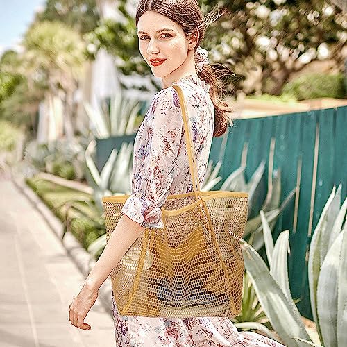 VKIOIP Women Mesh Tote Beach Bag,Shoulder Bag for Vacation,Picnic 5