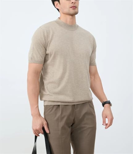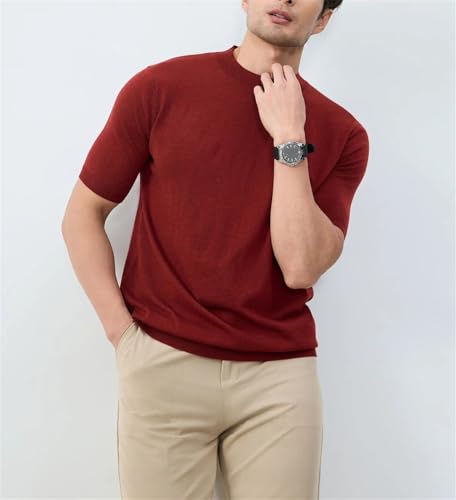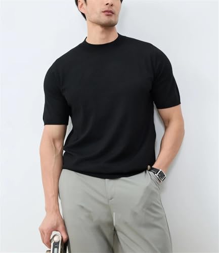 Men’s Knitted Wool Sweater Short Sleeve Round Neck Slim Fit Solid Color Comfort Summer Casual Base Layer Pullover 5